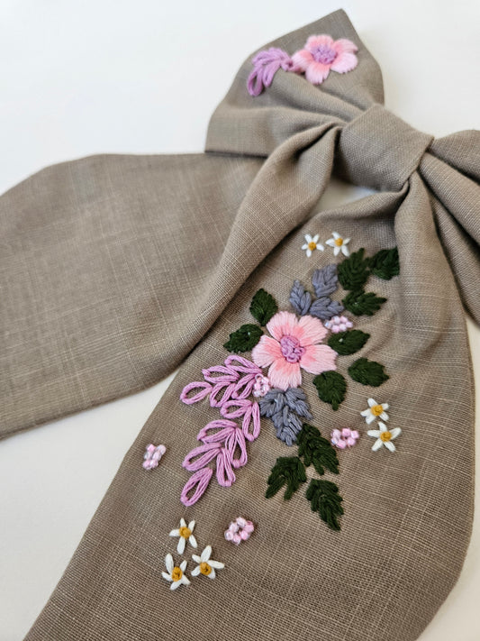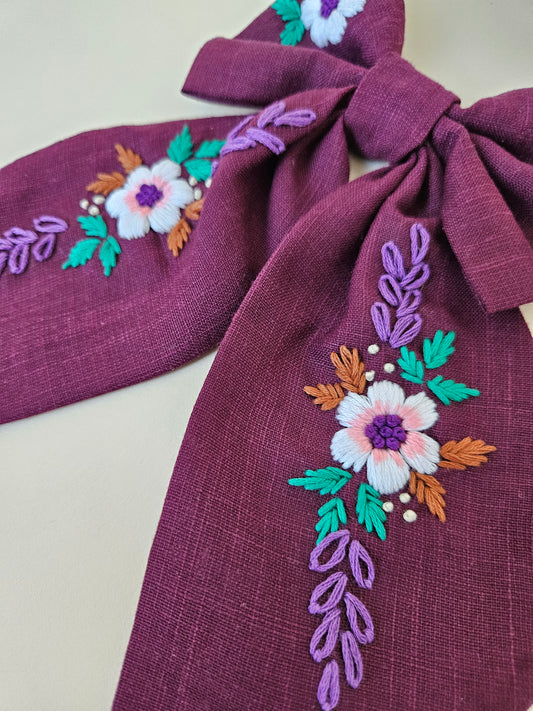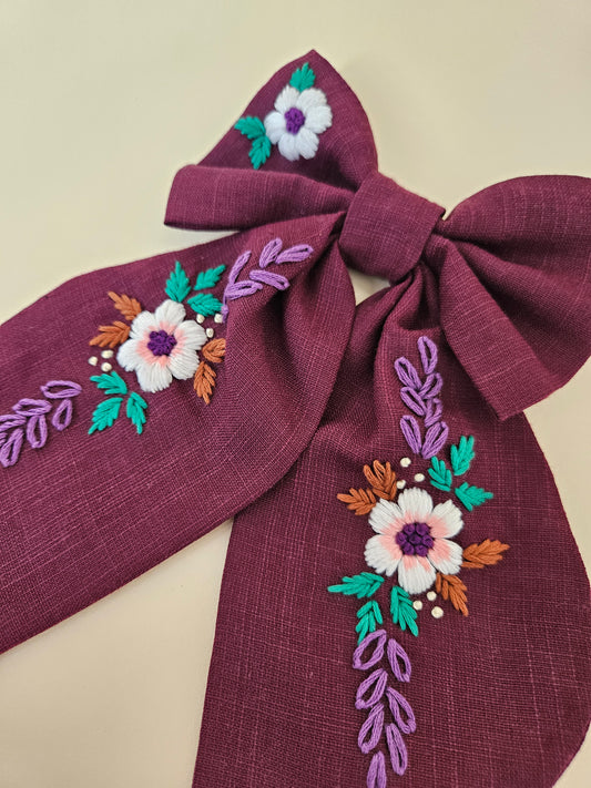 Hand-embroidered Hair Bow