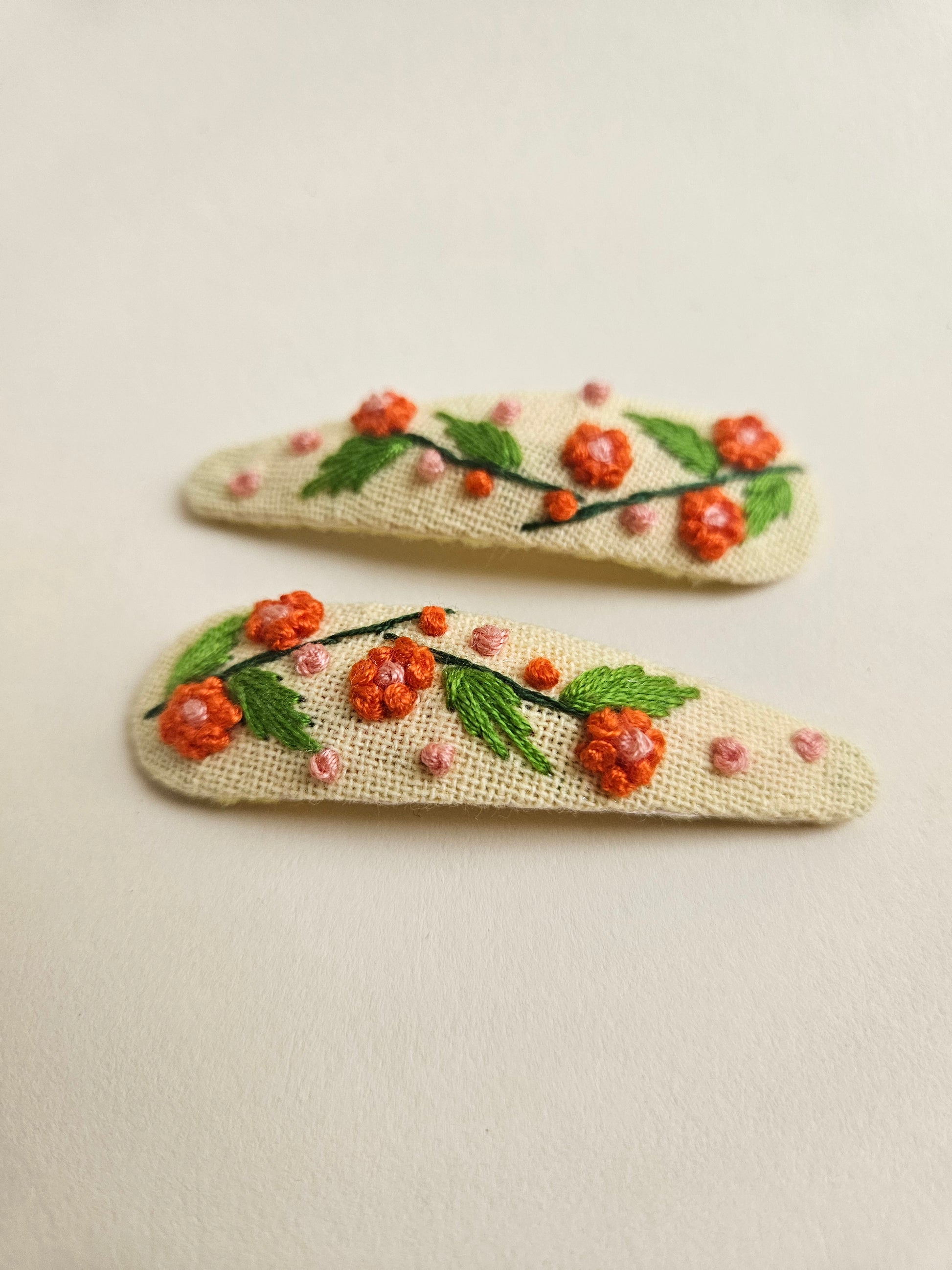 Hand-embroidered hair clips