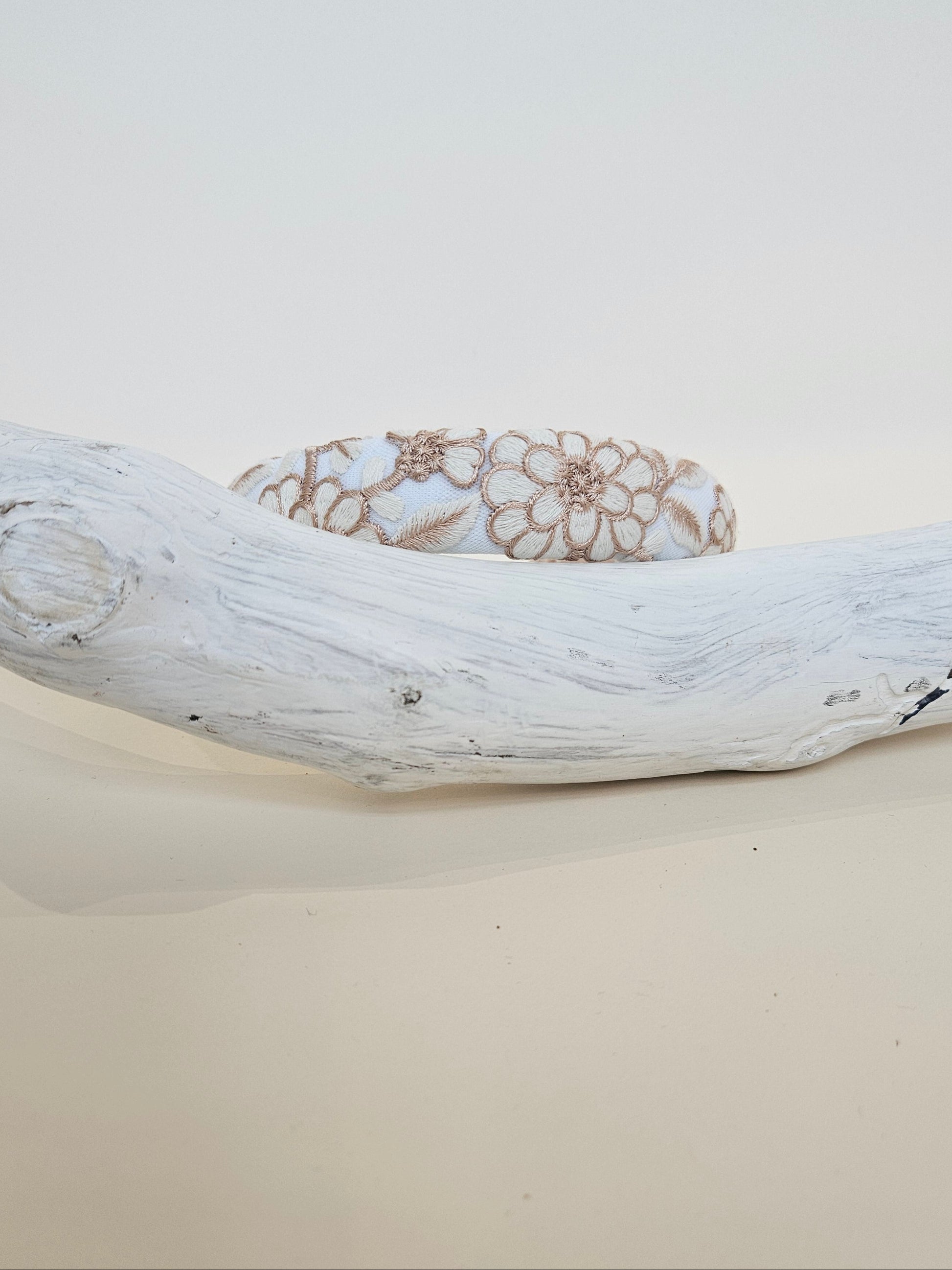 Introducing our headband Jasmijn, a handmade and padded accessory that offers a nice soft feel. Crafted with beautiful embroidered Indian lace. The inside is lined with color-matching velvet lace for added comfort and style. Suitable for kids aged 2 and up, as well as moms due to its flexible design, It's the perfect finishing touch to elevate your outfit.
