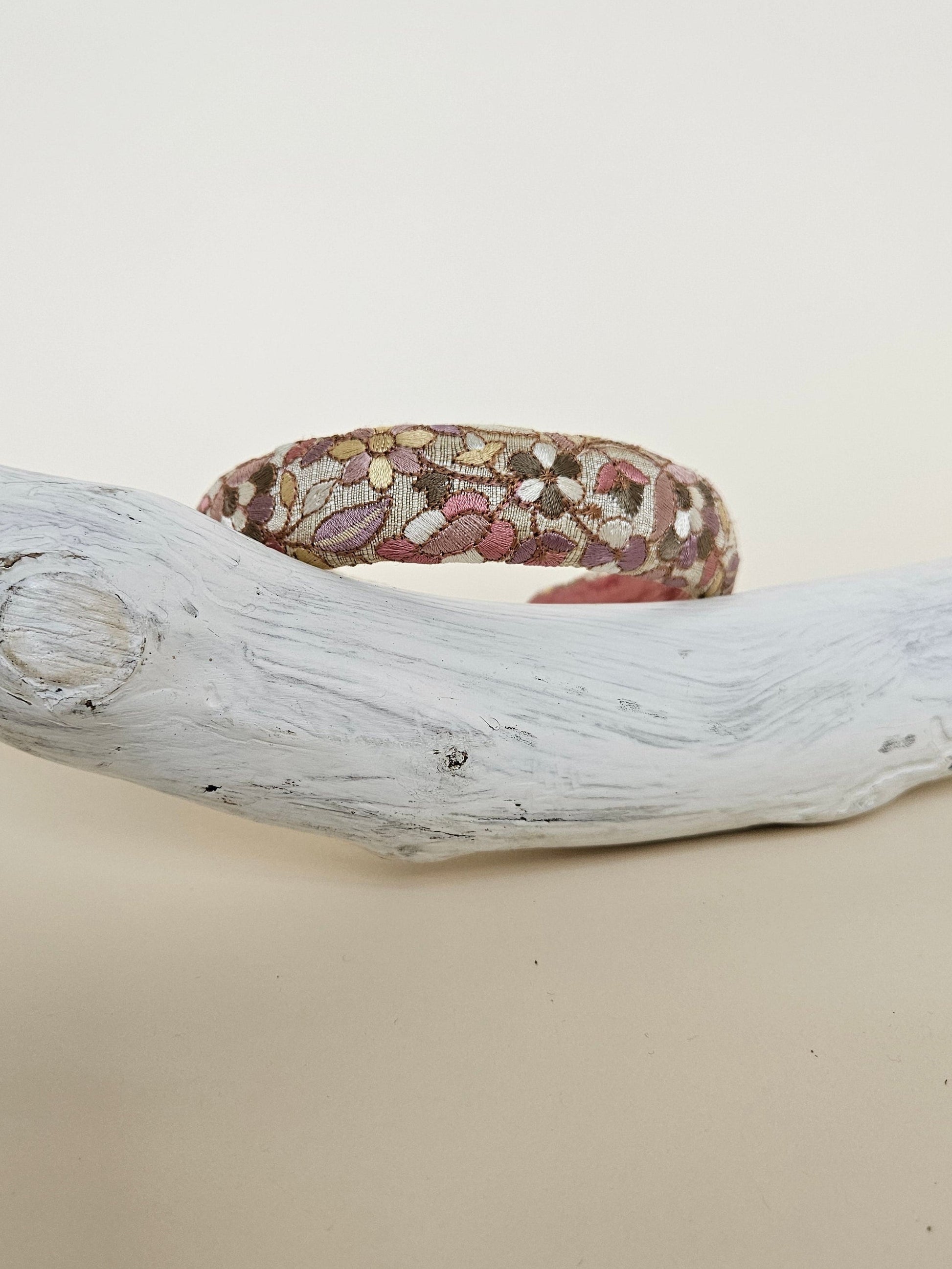 Introducing our headband Lina, a handmade and padded accessory that offers a nice soft feel. Crafted with beautiful embroidered Indian lace. The inside is lined with color-matching velvet lace for added comfort and style. Suitable for kids aged 2 and up, as well as moms due to its flexible design, It's the perfect finishing touch to elevate your outfit.