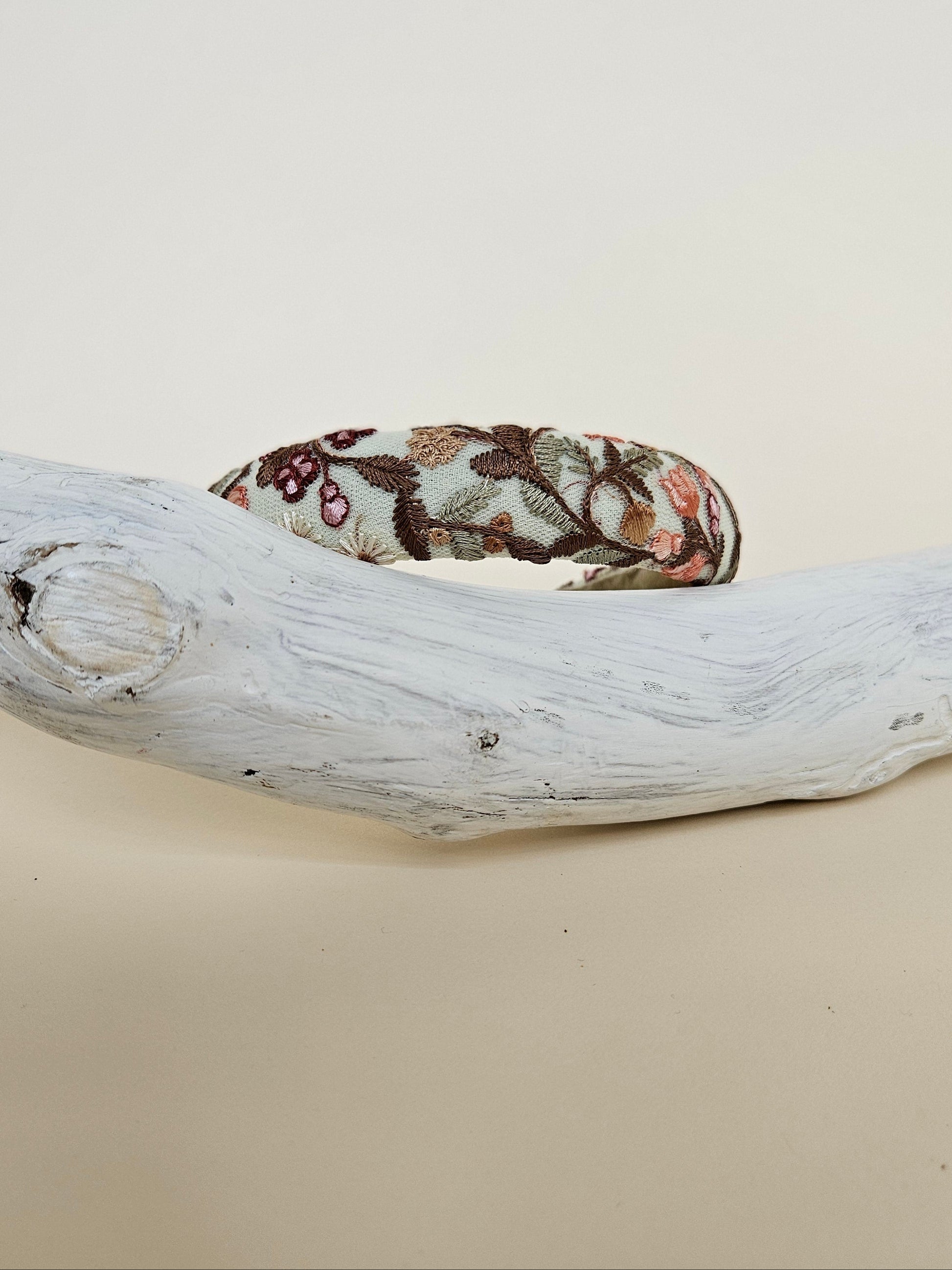 Introducing our headband Louna, a handmade and padded accessory that offers a nice soft feel. Crafted with beautiful embroidered Indian lace. The inside is lined with color-matching velvet lace for added comfort and style. Suitable for kids aged 2 and up, as well as moms due to its flexible design, It's the perfect finishing touch to elevate your outfit.