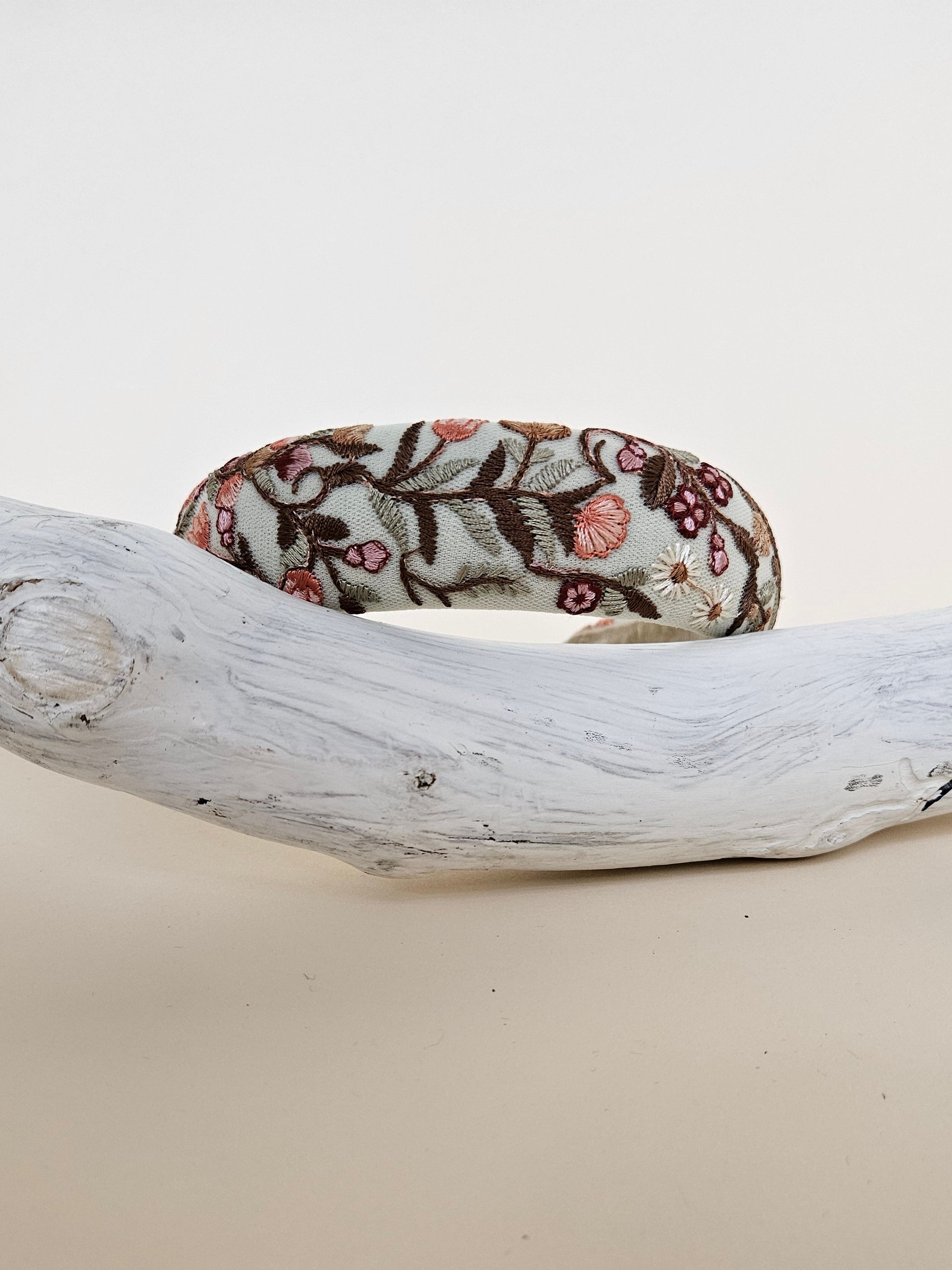 Introducing our headband Louna, a handmade and padded accessory designed exclusively for adults. This elegant piece has beautiful embroidered Indian lace and is lined with color-matching velvet lace for enhanced comfort and style. Its flexible design ensures a perfect fit, making it an ideal finishing touch to elevate your outfit.