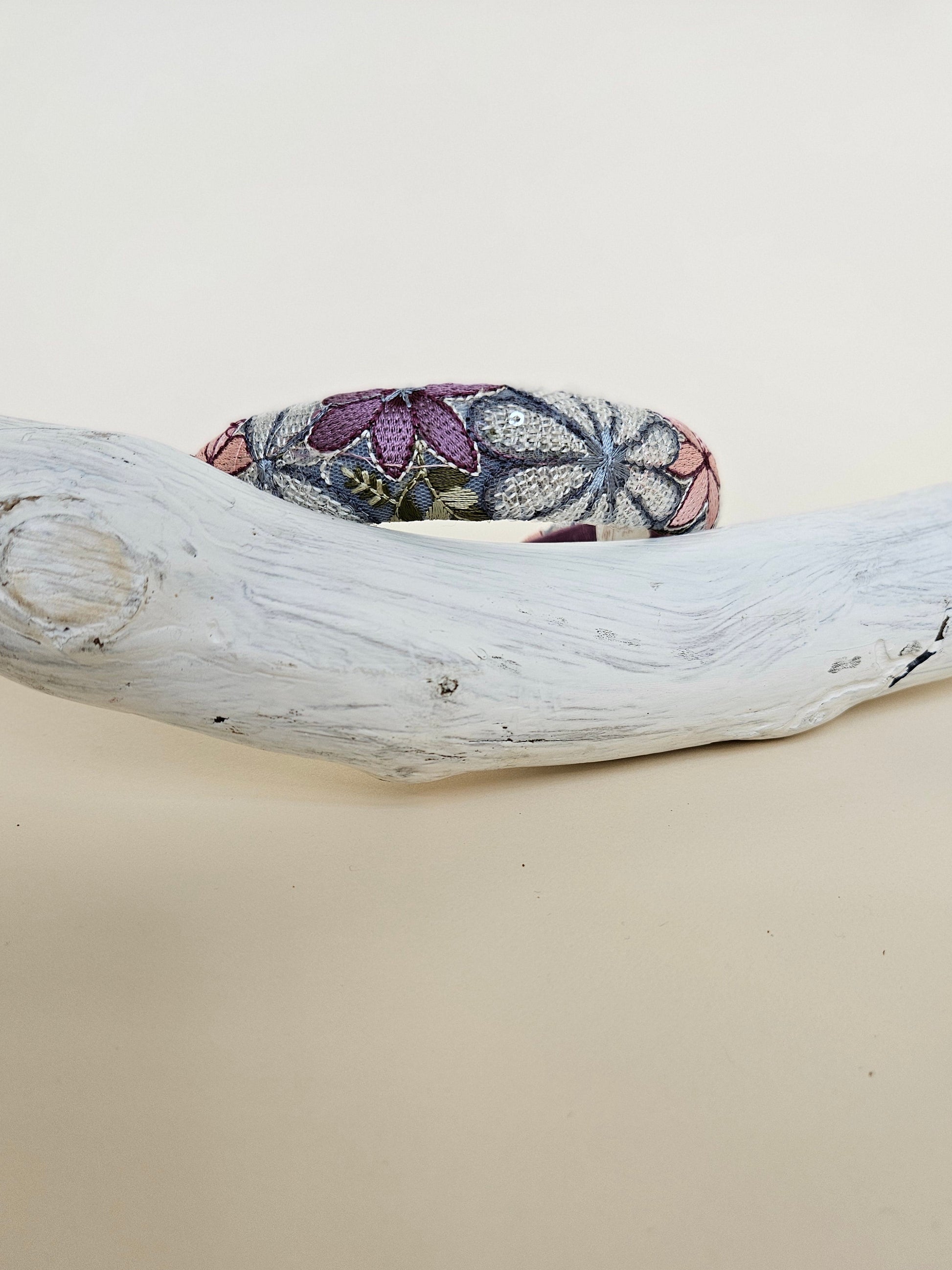 Introducing our headband Lovis, a handmade and padded accessory that offers a nice soft feel. Crafted with beautiful embroidered Indian lace. The inside is lined with color-matching velvet lace for added comfort and style. Suitable for kids aged 2 and up, as well as moms due to its flexible design, It's the perfect finishing touch to elevate your outfit.