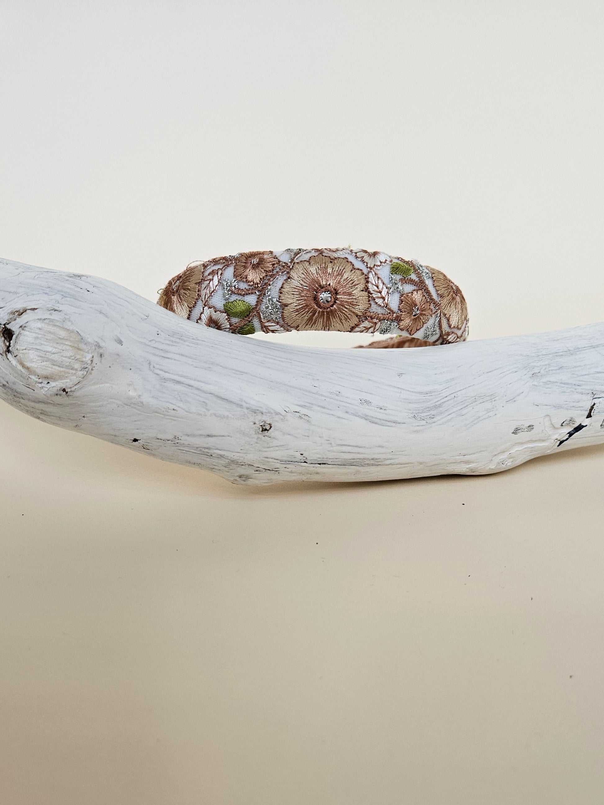 Introducing our headband Moïs, a handmade and padded accessory that offers a nice soft feel. Crafted with beautiful embroidered Indian lace. The inside is lined with color-matching velvet lace for added comfort and style. Suitable for kids aged 3 and up, as well as moms due to its flexible design, It's the perfect finishing touch to elevate your outfit.